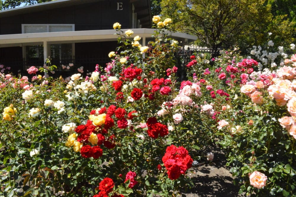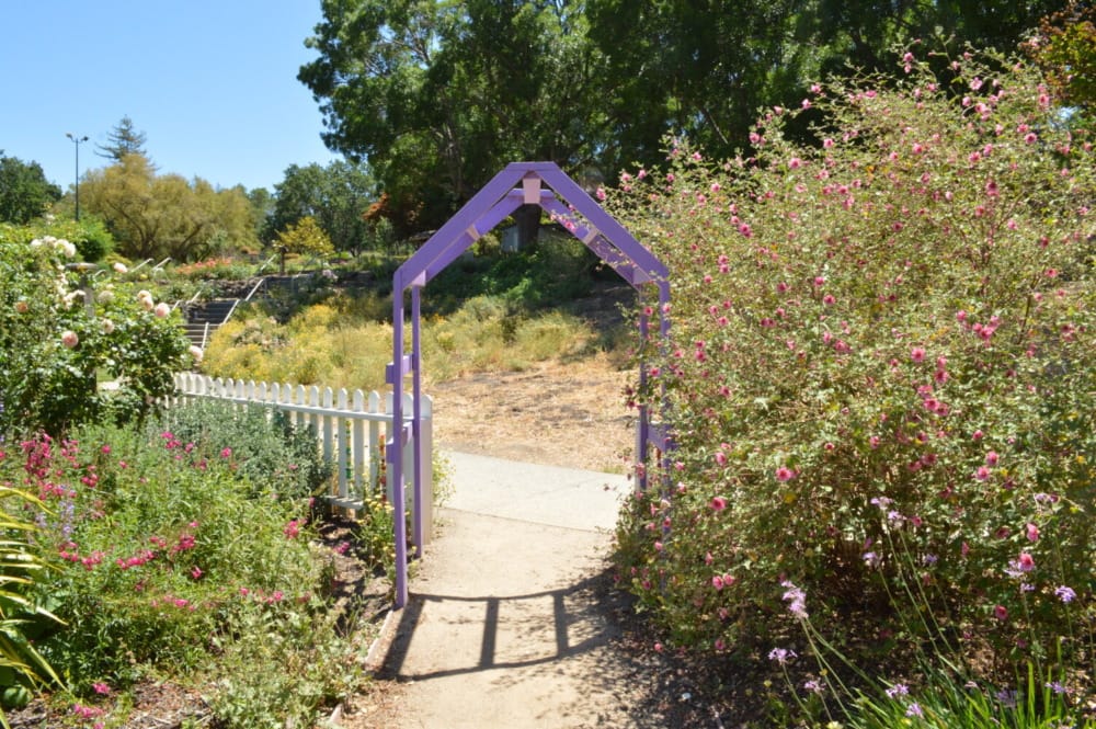 It's worth the drive to Walnut Creek to escape the city fog. Heather Farm Park is part park and part gardens. The Cowden Rose Garden sits around a gazebo and is bordered by the park and pollinator, butterfly, and waterfall gardens. There are many benches for relaxing amongst the roses, many of which are identified with labels. Heather Farm is the hottest out of all the gardens on the list.