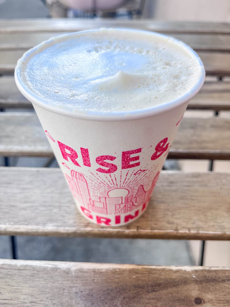 The peanut butter latte is the only one of its kind in the city at Rise and Grind, a cute little coffee shop right down the street from Golden Gate Park. Pre-covid the shop was overcrowded with people but now it’s takeout only with about 3 tables outside to enjoy. The peanut butter is rich and creamy and tends to sit at the bottom if you don’t stir. Worth noting that this one might taste better with a little sweetener added since the peanut butter makes it slightly more bitter than a regular latte. It’s great to take this to stroll around the park.