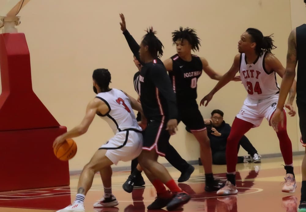 City College's fast-paced play and precision shooting, as well as three-point shooting by Kadeem Nelson (2), Nathan Illunga (44) and CJ Hardy (0) seemed to trouble the Owls all night. With a 20- point lead into the second half, Rams reserves took over and got plenty of playing time on court.