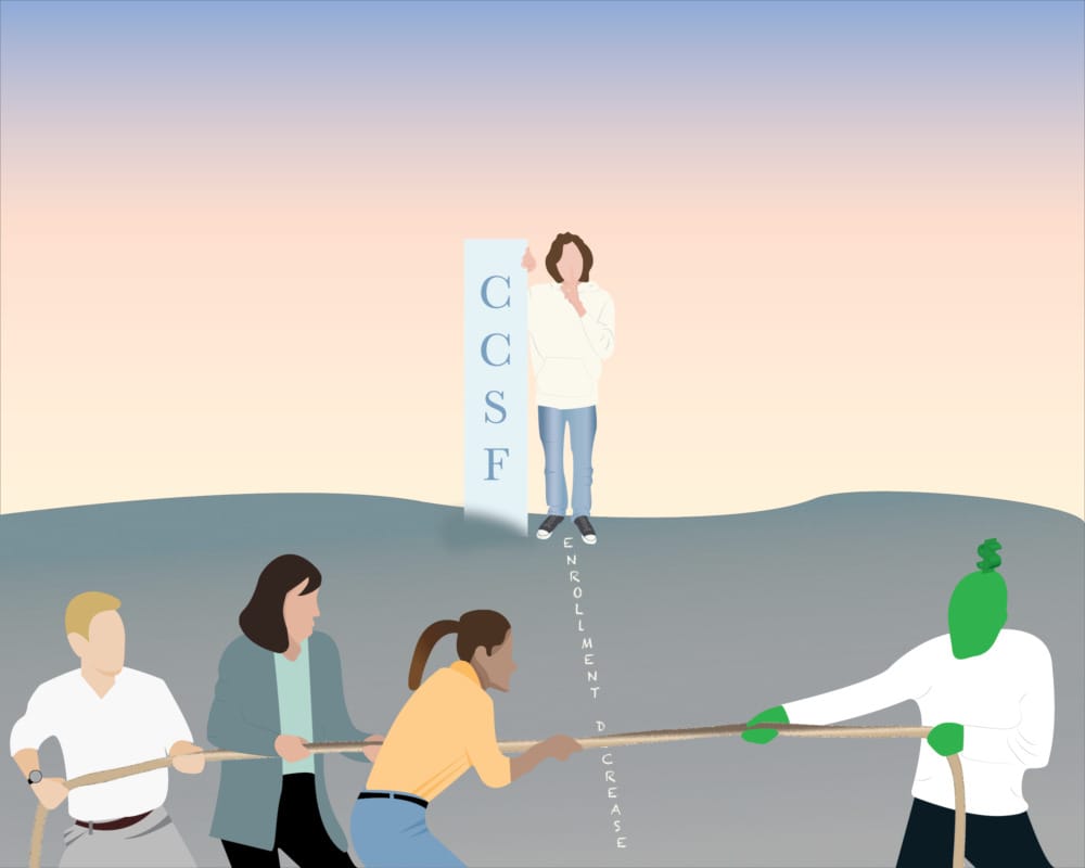 City College faces an 18 percent decline in enrollment compared to last year. The same situation can be seen in many higher institutions in the United States due to the COVID-19 pandemic and the economic hardships that have followed.