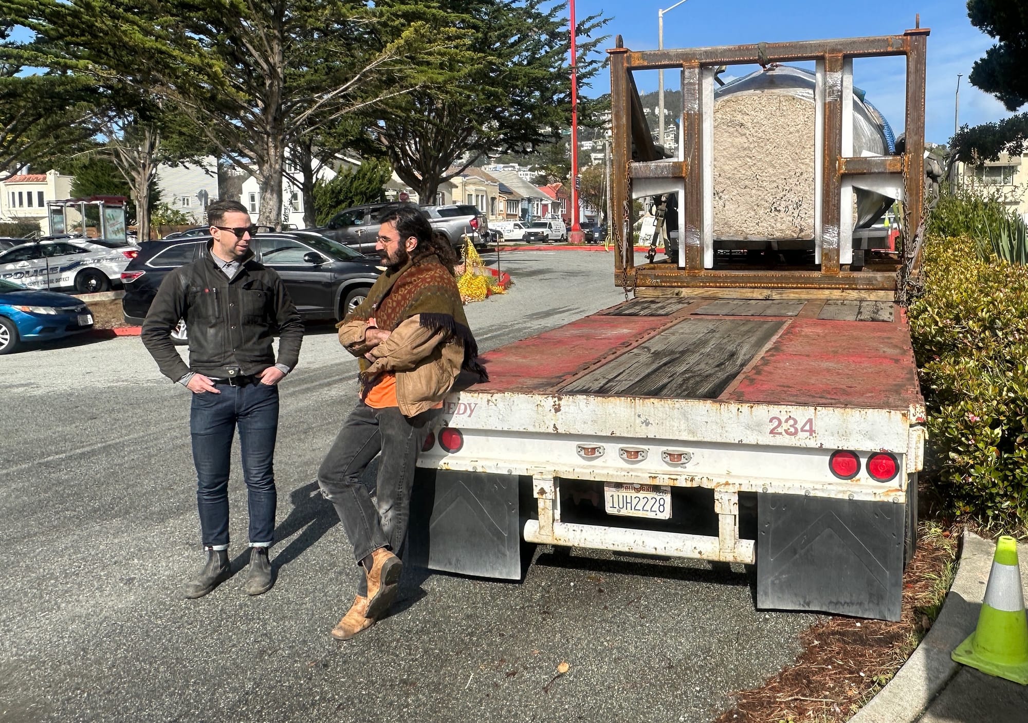 Jasmine Kaw, project manager in the Facilities Department, confirmed that the Olmec head would remain under wraps for the next week while strapped to the truck in the City College Police Department parking lot. There, it would at least have some security.
