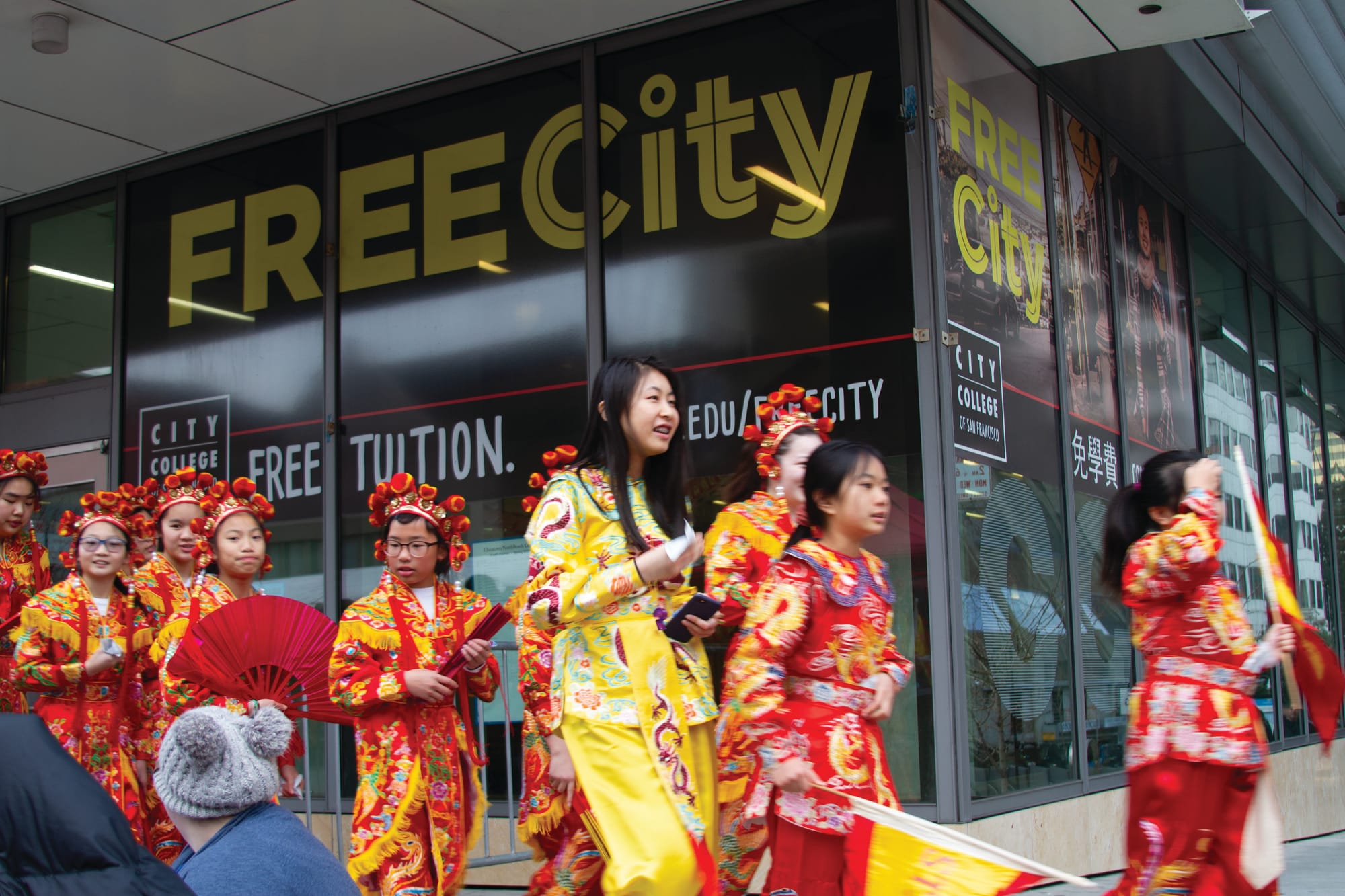 The parade celebrated the Year of the Pig. It kicked off on 2nd St. and Market St. and ended outside the City College Chinatown campus. This was the first Chinese New Year viewing party hosted by the AC.