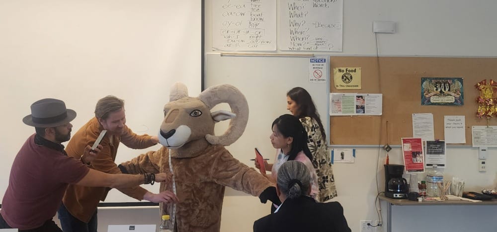After all four students had presented their pitches they were given the opportunity to measure various aspects of the Rocky costume, which they did with a notable level of meticulousness measuring not only height and length-of-limb, but also the circumference of the Ram mascot’s head, shoulders, waist, legs, and torso.