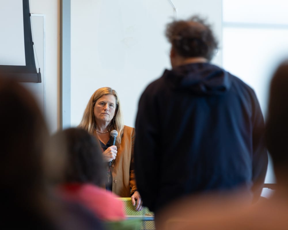 Claire Heimer, a mathematics department professor, noted “competing visions” among college stakeholders, as well as “long waitlists” for classes. Despite issues at the college, Heimer, in a rare moment of levity for the forum, said, “I have self-respect, but I would absolutely be chancellor of this school. I don’t think that’s necessarily a good idea, but it wouldn’t be a lack of self-respect.”