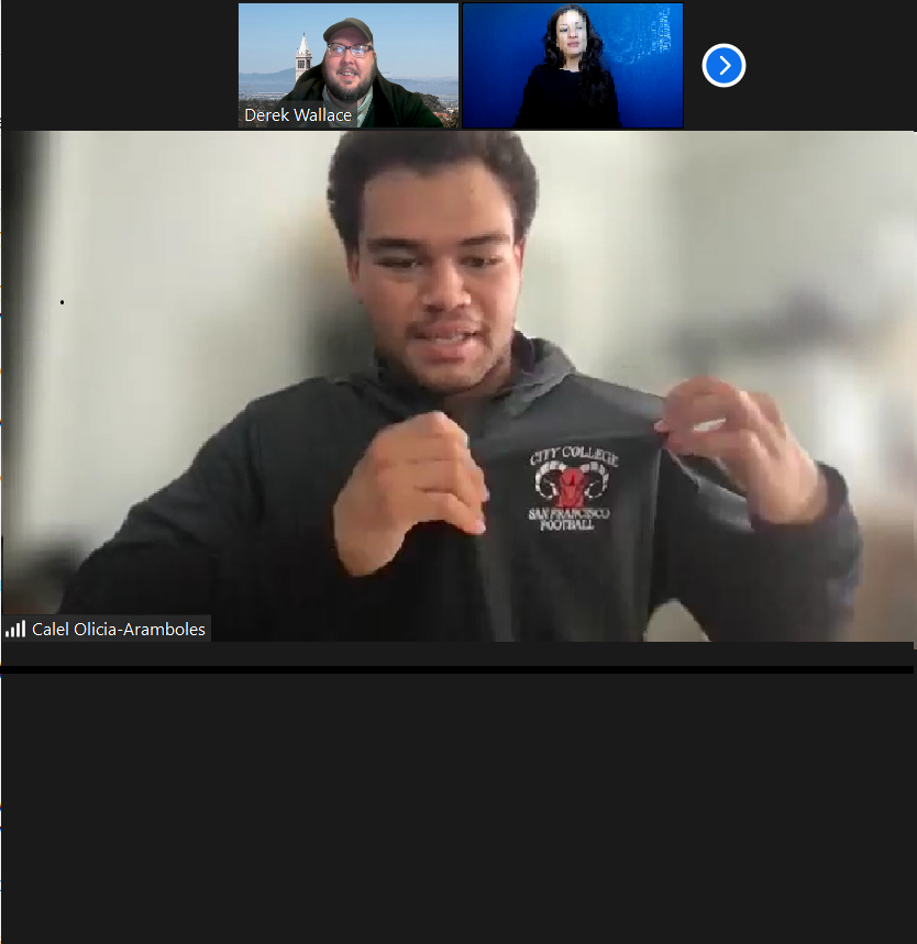 One special thing Calel already did for City College was to give the Rams their own special “name sign”, which the team has performed before their home games. The team hypes each other up, the players clapping their hands to a certain fevered pace. When Calel signs “GO RAMS,” everybody joins him, finishing in a power stance before running onto the field through the iconic plume of red smoke.