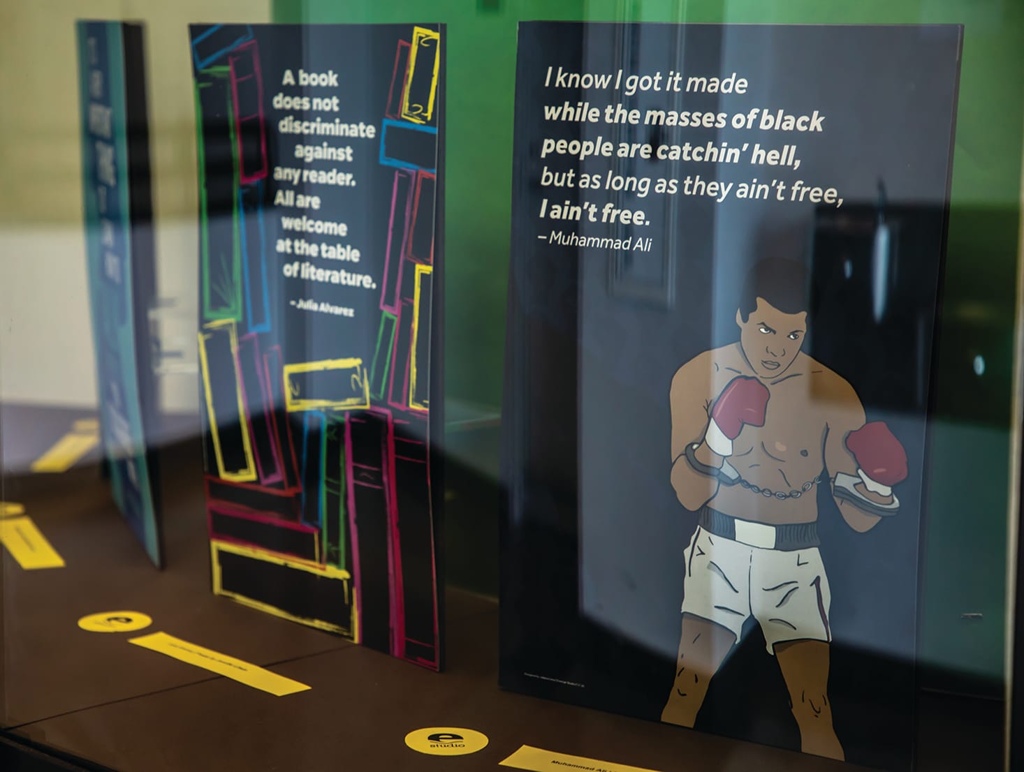 Students’ artwork is raising concerns on social justice through creative posters with inspirational quotes set up in Rosenberg Library
