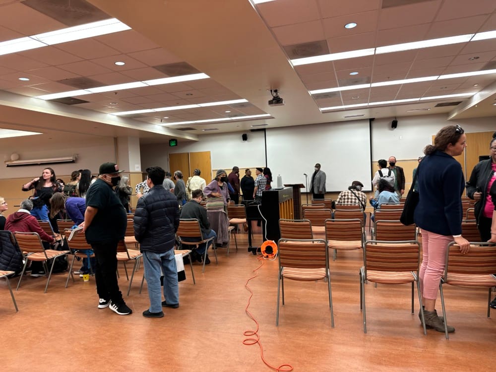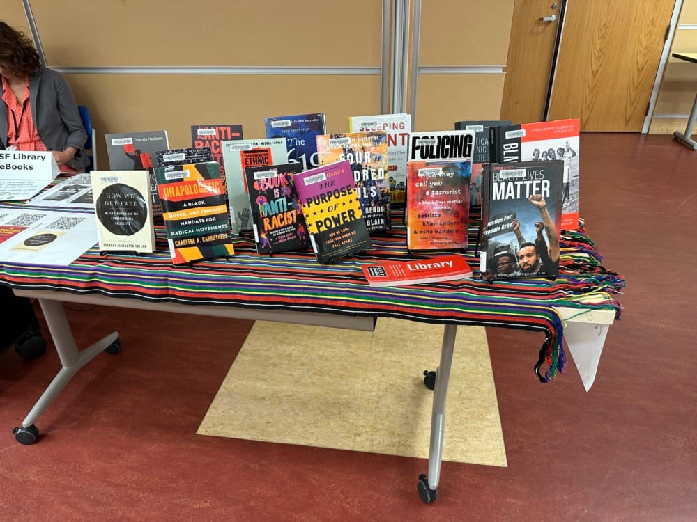 The City College library had a table at the event, and librarian Lisa Velarde was there to help students check out books. There were a variety of print books for checkout on social and racial justice topics, including Garza’s own book, “The Purpose of Power: How We Come Together When We Fall Apart.” There were also printouts of book QR codes that could be scanned so students could instantly access a digital copy of a book.