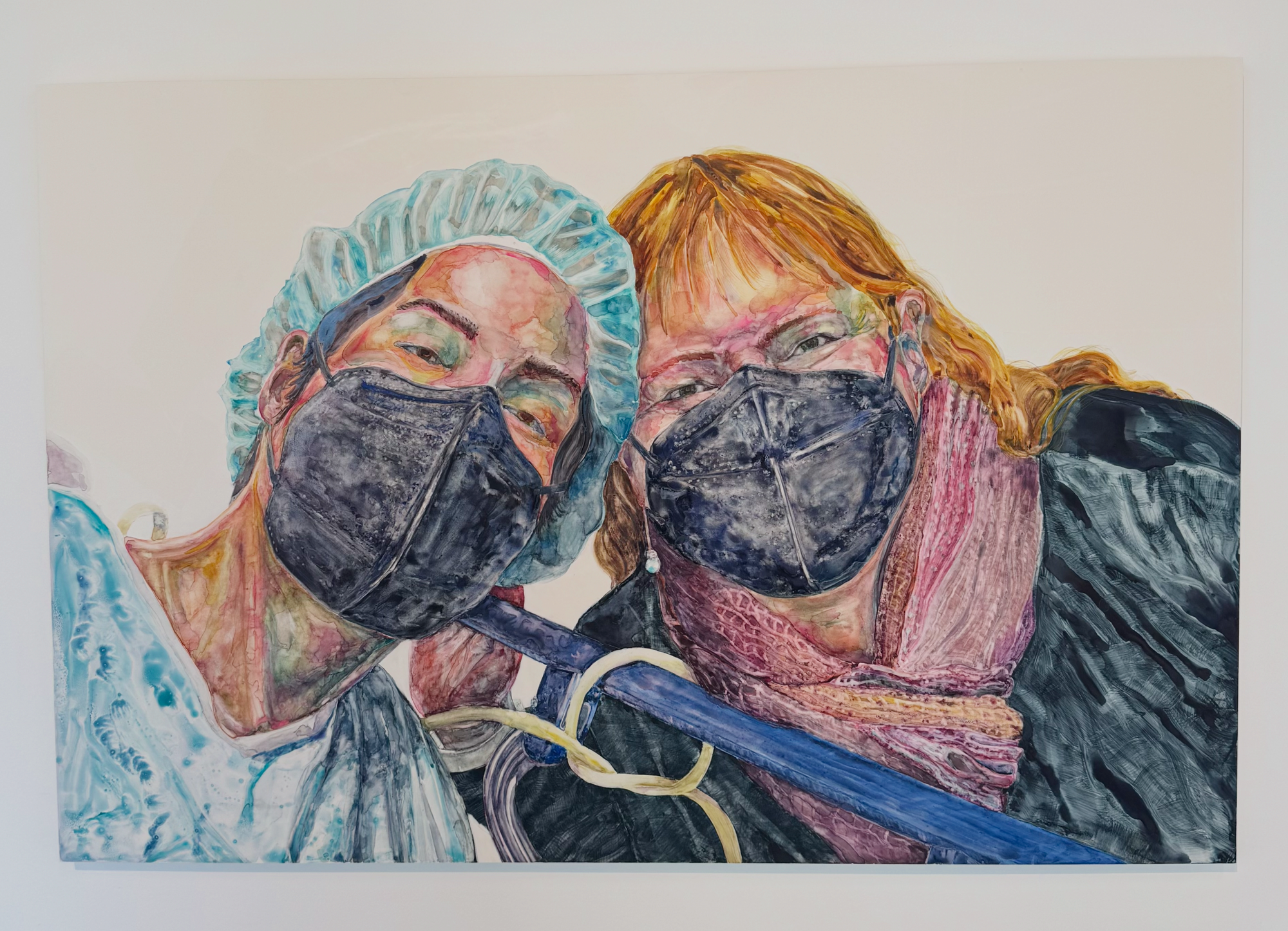 Near the gallery’s center sits Art Department Chair Stephanie Robison’s “Cold Comfort,” a marble sculpture resembling a cushion that took her years to complete. Hanging on the front wall, Nancy Elliott’s watercolor rendition of a pre-surgery selfie draws visitors in with its dynamic liquid hues. Near the back windows, Tom Decker's ceramic plate catches the light in its galaxy of speckles.