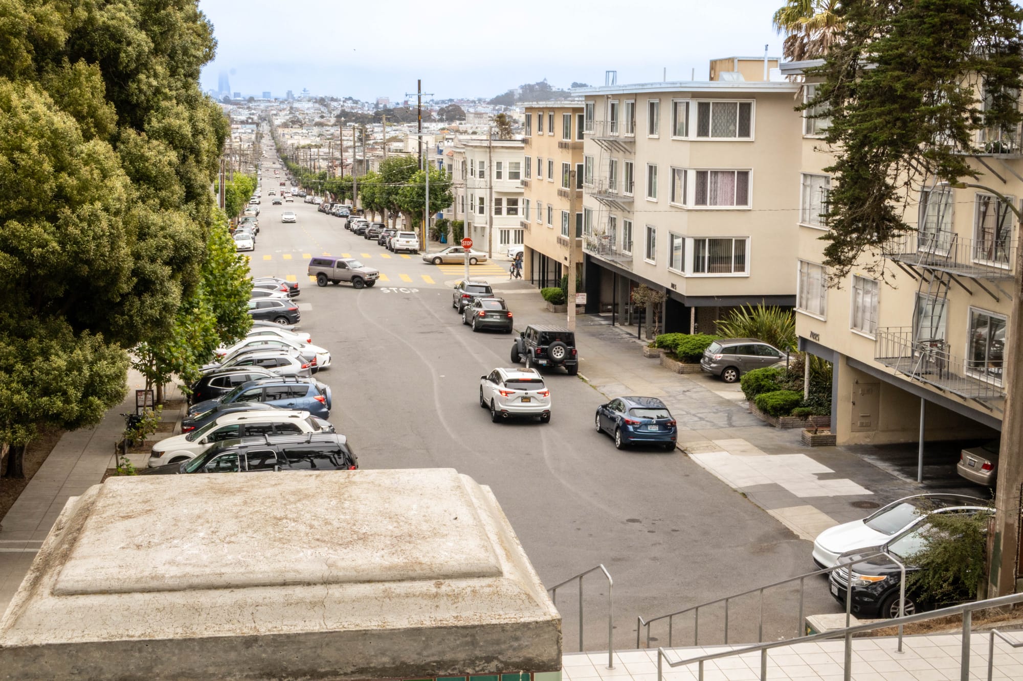 Next to the Katherine Delmar Burke School lie the Lincoln Park Steps, a mosaic staircase with 52 tiled steps at the base of the Lincoln Park Golf Course. Two benches, one on each side, sit along the stairs, and at the top is a long bench with its own intricate mosaic design. From there, you can see far down California Street and a sliver of the San Francisco skyline.
