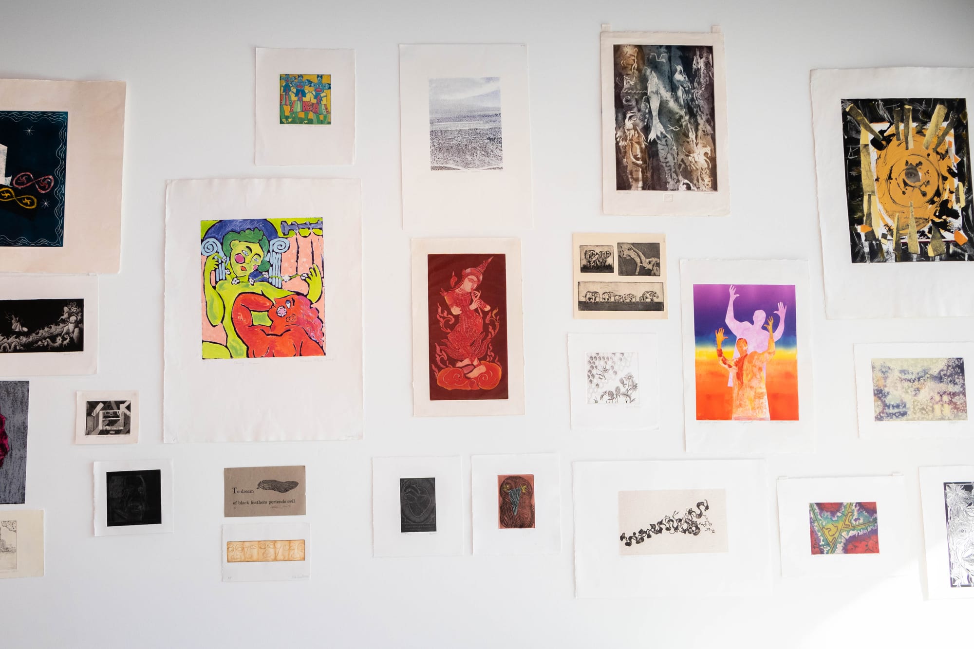 Walking into the room, you’re confronted by hundreds of prints hung all over the walls with different shapes, colors and techniques. Your eyes don’t know which one to look at first. Stacks of prints were arranged across the tables, where people spent up to an hour searching for their favorite.
