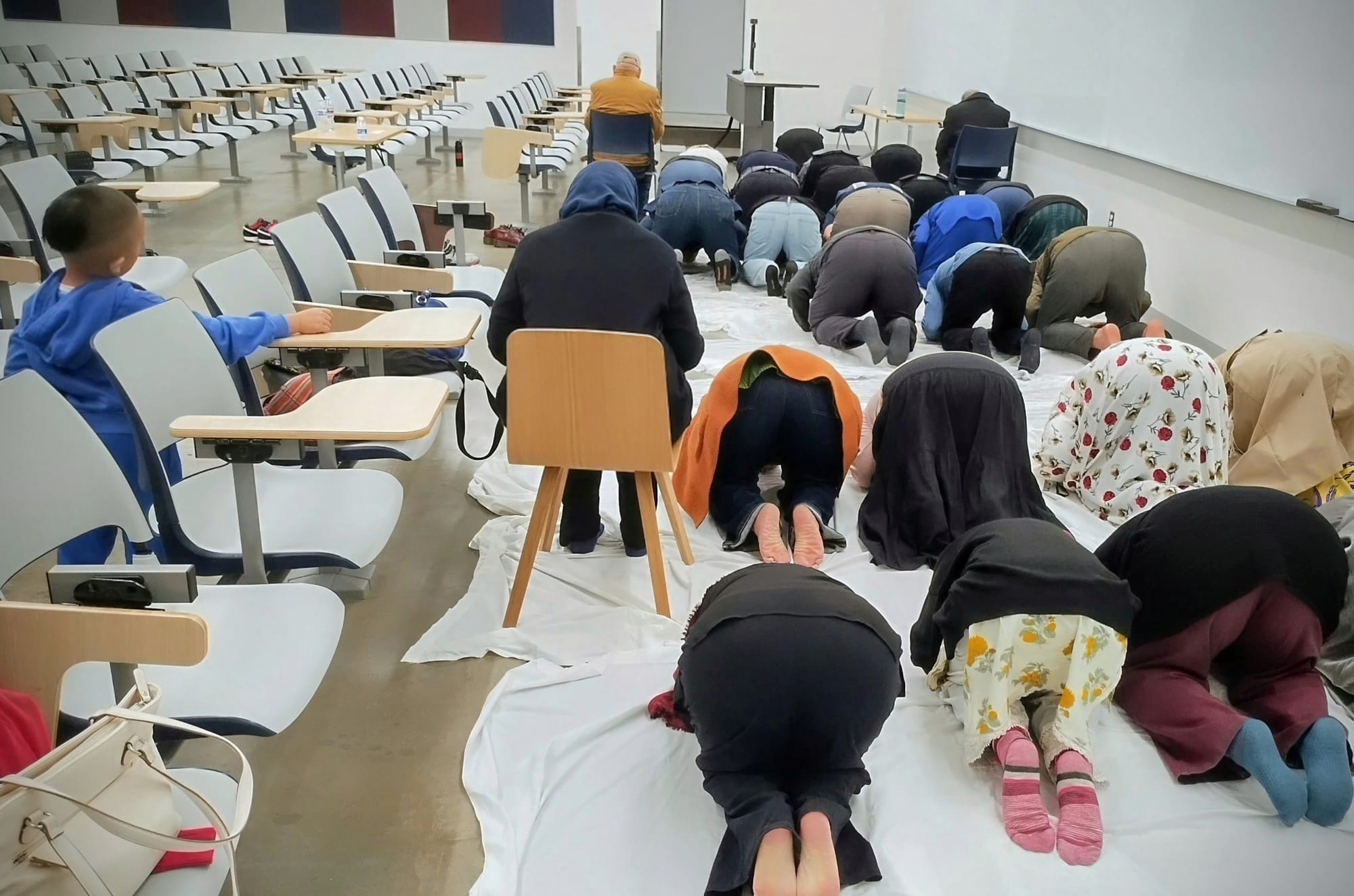 After breaking the fast, some guests walked to Room 103 to perform the evening prayer.