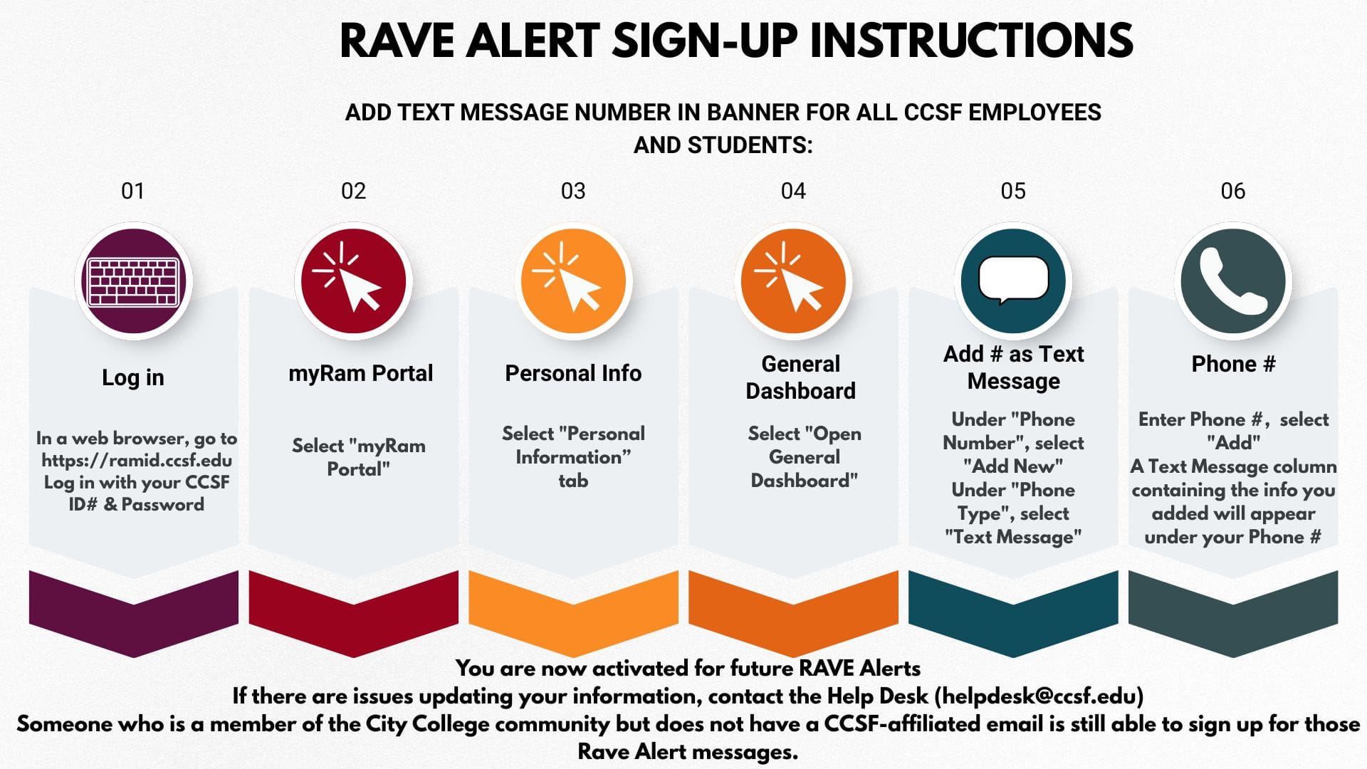 Students and staff were reminded to update their Rave Alert contact information, the system used to send emergency notifications by text or email in the event of immigration enforcement activity on or near campus.