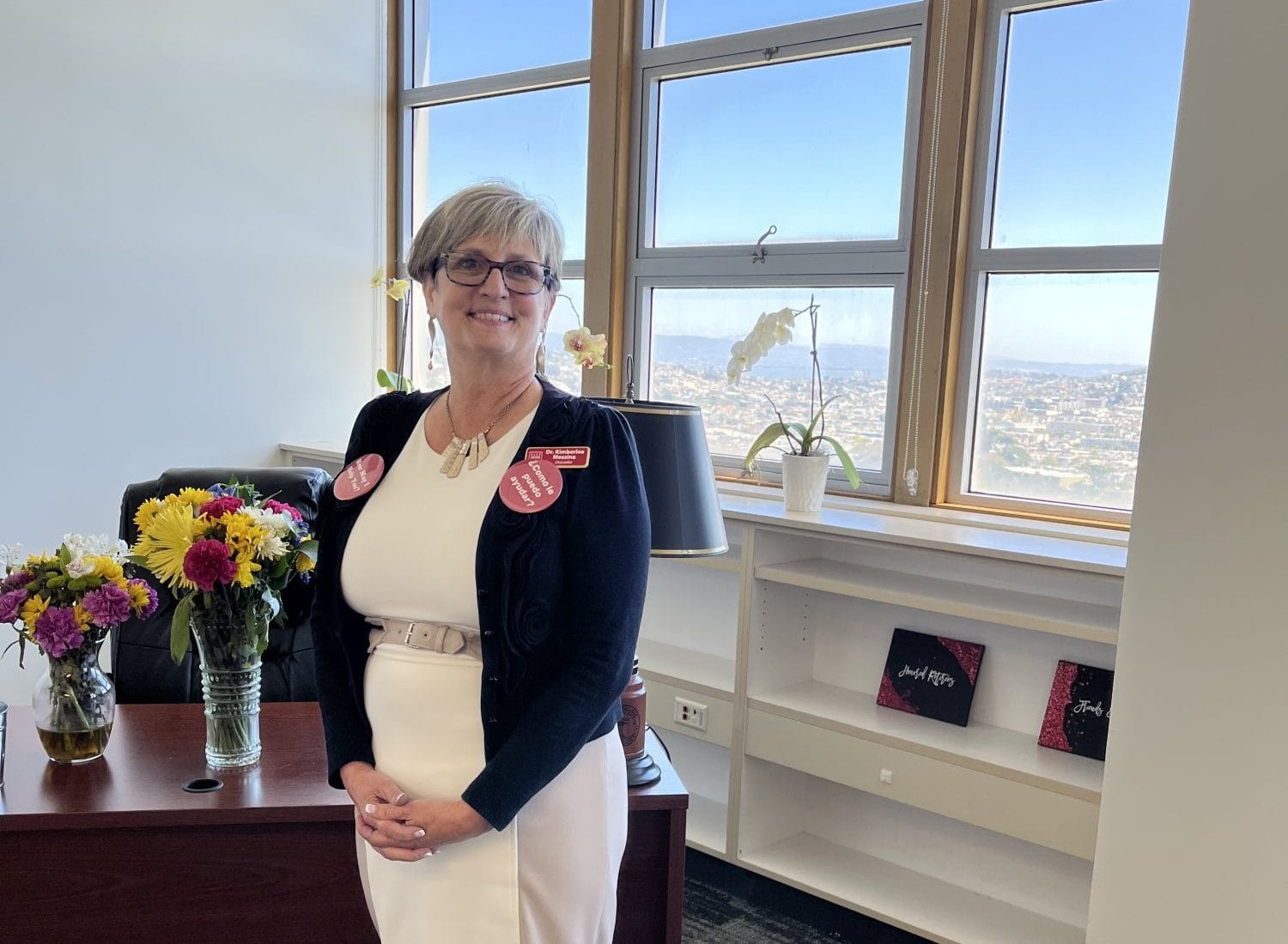 The latest chancellor, Kimberlee Messina, has settled into her office on the top floor of Cloud Hall in room 324 with lovely views of the bay. She told The Guardsman that her door was always open.