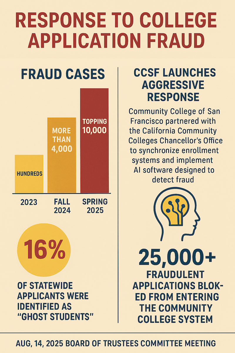 Beginning in late 2024, City College partnered with the California Community Colleges Chancellor’s Office to share information and implement artificial intelligence software designed to detect fraud.