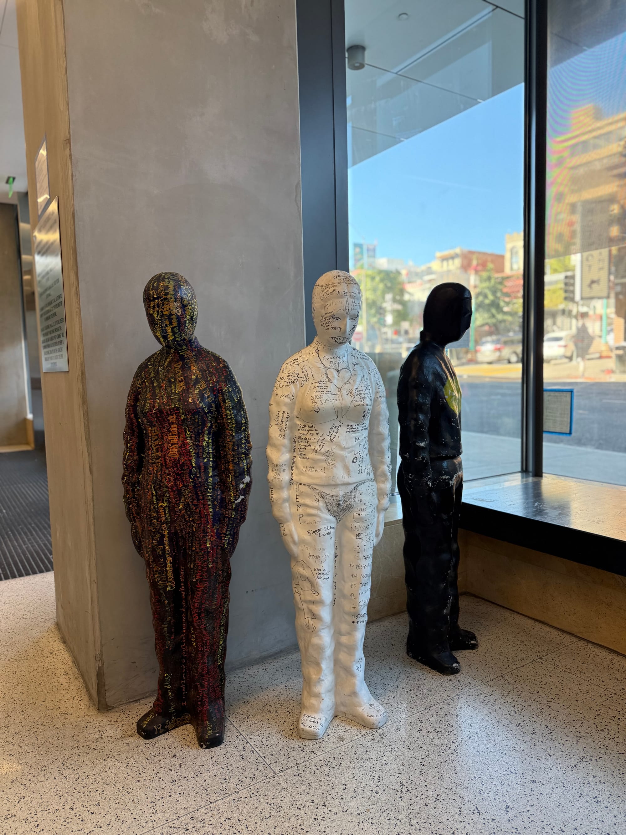 The show features a diverse range of art disciplines, including life-sized fiberglass figures from Smith’s “Missing Student Project.” Created in 2004 in collaboration with 60 colleges, the statues represent the consequences of restricted access to higher education.