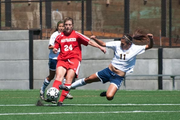 City College’s aggresive style of play showed early when Bassett had a chance to take the lead with a header in the first half but missed. Soon after, defensemen Jasmin Palencia’s shot was blocked by the Olympian’s goalie.