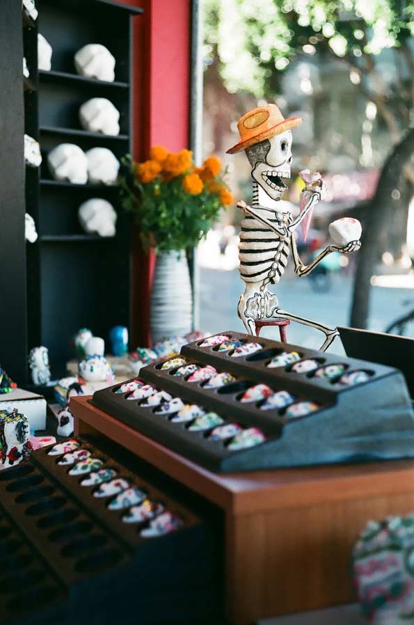 Sugar skulls are incorporated into most Dia de los Muertos altars. While many shops and bakeries sell sugar skulls, the edible jewels are often made at home or at workshops.