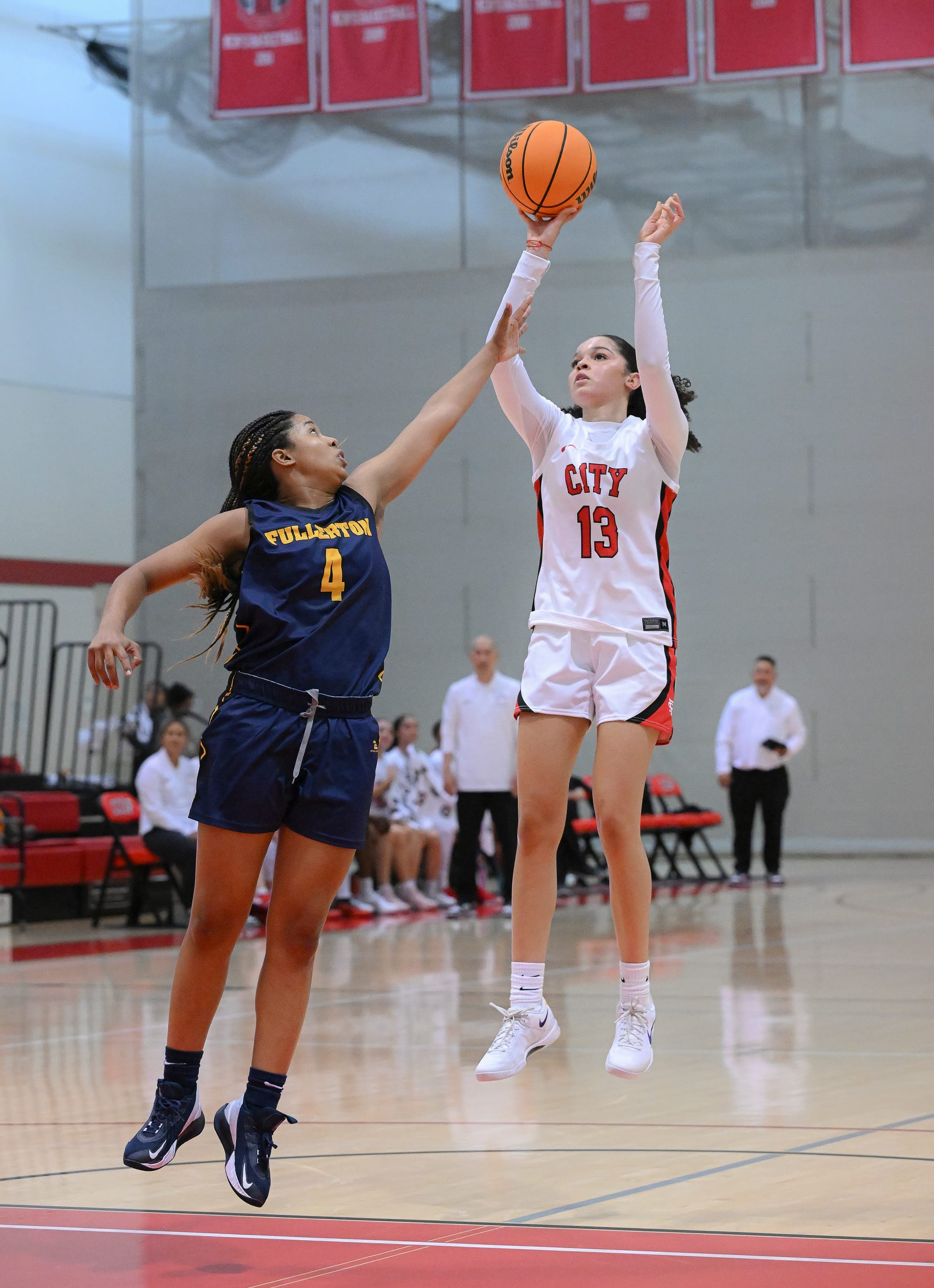 Alessandra Nelson (13) takes a shot against Fullerton College on Friday, Nov. 7, 2025, in San Francisco. Nelson had a team high 13 points to go along with her 4 steals and 2 blocked shots. City College opened their season at home against Fullerton College with decisive 69-43 win. After Fullerton scored the first 2 points of the game, City College scored the next 5 points and never looked back. (Bob Kinoshita/The Guardsman)Rams Naija Harris (20) drives past Fullerton College defender on Friday, Nov. 7, 2025, in San Francisco. (Bob Kinoshita/The Guardsman)Rams Caelan De Vera (3) takes a shot against Fullerton College on Friday, Nov. 7, 2025, in San Francisco. (Bob Kinoshita/The Guardsman)Rams June Lumumba (32) takes a shot over Fullerton College defender on Friday, Nov. 7, 2025, in San Francisco. (Bob Kinoshita/The Guardsman)Rams Alessandra Nelson (13) steals a pass from Fullerton College on Friday, Nov. 7, 2025, in San Francisco. (Bob Kinoshita/The Guardsman)