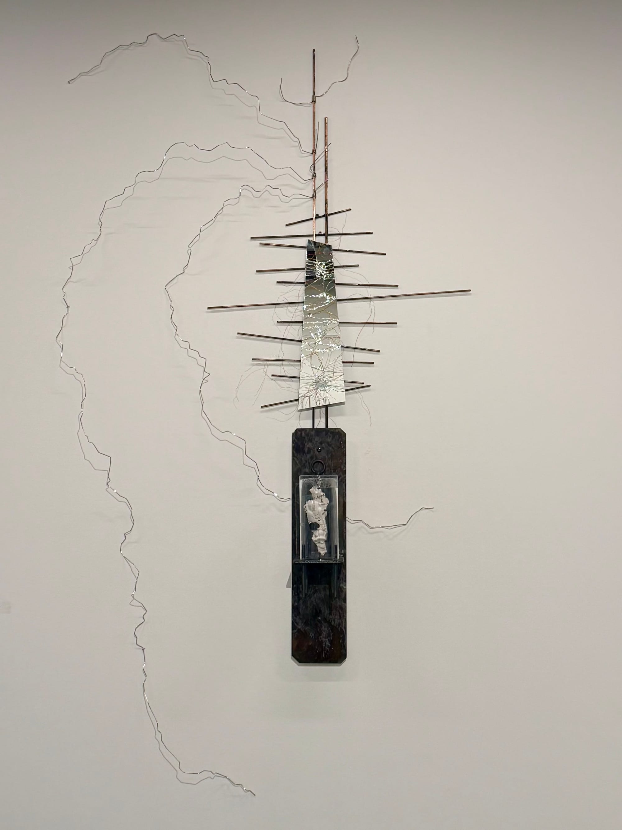 Eric Rasmussen, studio arts major, observed that Rosales’ piece “If Ten Thousand Things Weren’t Enough” (2025) deems itself a “retro” yet “futuristic” work which showcases Rosales’ ability to bridge gaps between mediums, materials and time itself.