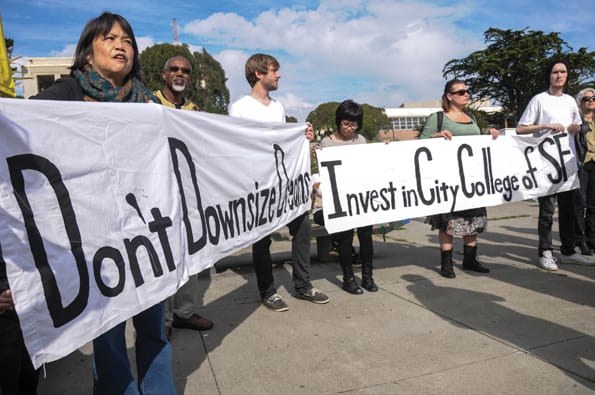 Students from San Francisco State University, UC Davis and UC Berkeley also participated in the rally. Protesters held signs saying “SFSU Stands in Solidarity with CCSF” and “You Can’t Consolidate Diversity.”