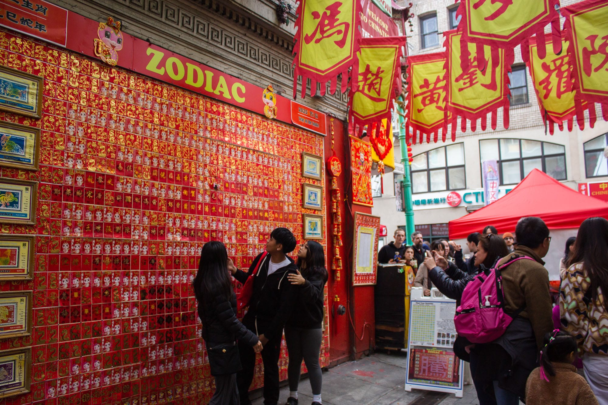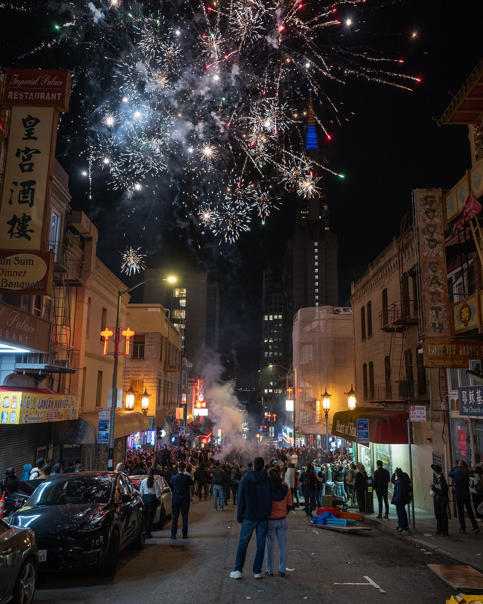 Crowds stretched as far as the eye could see down Grant Avenue for the Community Street Fair. Gold banners hanging throughout the neighborhood celebrated Mayor Daniel Lurie, who would serve as honorary grand marshal of the parade alongside Chinese American actress Joan Chen. Feb. 15, 2025 (Kyra Young/The Guardsman)A group of friends look back at the Zodiac Wall, an iconic mural set up in Jack Kerouac Alley for the Lunar New Year. The mural consists of over 1,100 red envelopes – traditional for the new year – and has been annually set up for over a decade by the hands of Nancy Yu Law and her family. Jack Kerouac Alley connects the Chinatown and North Beach neighborhoods. Feb. 15, 2025 (Kyra Young/The Guardsman)The vibrant, acrobatic dragons symbolize great power, auspiciousness and dignity. During the parade's Dragon Dance, dancers will rhythmically move the long puppets to ward off evil spirits. Feb. 15, 2025 (Kyra Young/The Guardsman)Nathan Hua, a second year City College design student, holds his 2025 Year of the Snake design on a crewneck for Evan & Josh. The family-founded photography and videography business aims to promote and celebrate Chinese Asian culture. Feb. 15, 2025 (Kyra Young/The Guardsman)Music filled the air as performers serenaded the Community Street Fair. Feb. 15, 2025 (Kyra Young/The Guardsman)A duo on a bike orbit a sparkler fountain at the intersection of Grant Avenue and Jackson Street. Feb. 15, 2025 (Patrick Perkins/The Guardsman)The vibrant head of a dragon puppet waits to be paraded by members of Yau Kung Moon Martial Arts School in San Francisco. Feb. 15, 2025 (Kyra Young/The Guardsman)A couple watching fireworks above the intersection of Grant Avenue and Washington Street, a block from the Lunar New Year parade route. Feb. 15, 2025 (Patrick Perkins/The Guardsman)