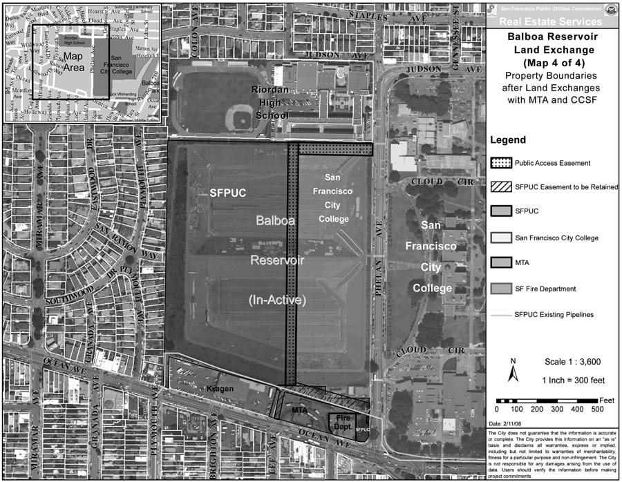 Currently, the reservoir is divided into two portions, the southern and smaller portion of the reservoir is owned by City College, with the SFPUC owning the northern portion, which is larger. The proposed swap will redivide the reservoir, dividing the reservoir in half but with the split running east and west, instead of north and south. The SFPUC’s western portion would again be larger, with City College owning the smaller eastern portion, running along Phelan Avenue.
