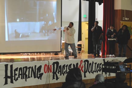 The hearing was also an attempt to unify the movement’s various concerns, including the implementation of “gang injunctions,” with the public outrage over the string of killings leading up to, and following, Grant’s death.