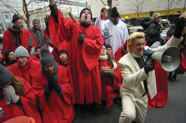 This all leads up to Friday, Nov. 25, or Buy Nothing Day, when Billy’s church will host a “Dance Your Debt Away” party in New York City’s Union Square and the Parade of Angels which will feature protesters in wings marching to the banks, showing their displeasure with corporate consumer campaigns.
