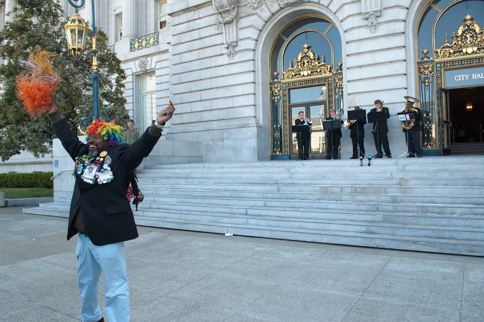 The San Francisco Lesbian and Gay Freedom Band performed several overtures, including “San Francisco” originally performed by Scott McKenzie in 1967, as the crowd patiently awaited the flag raising.