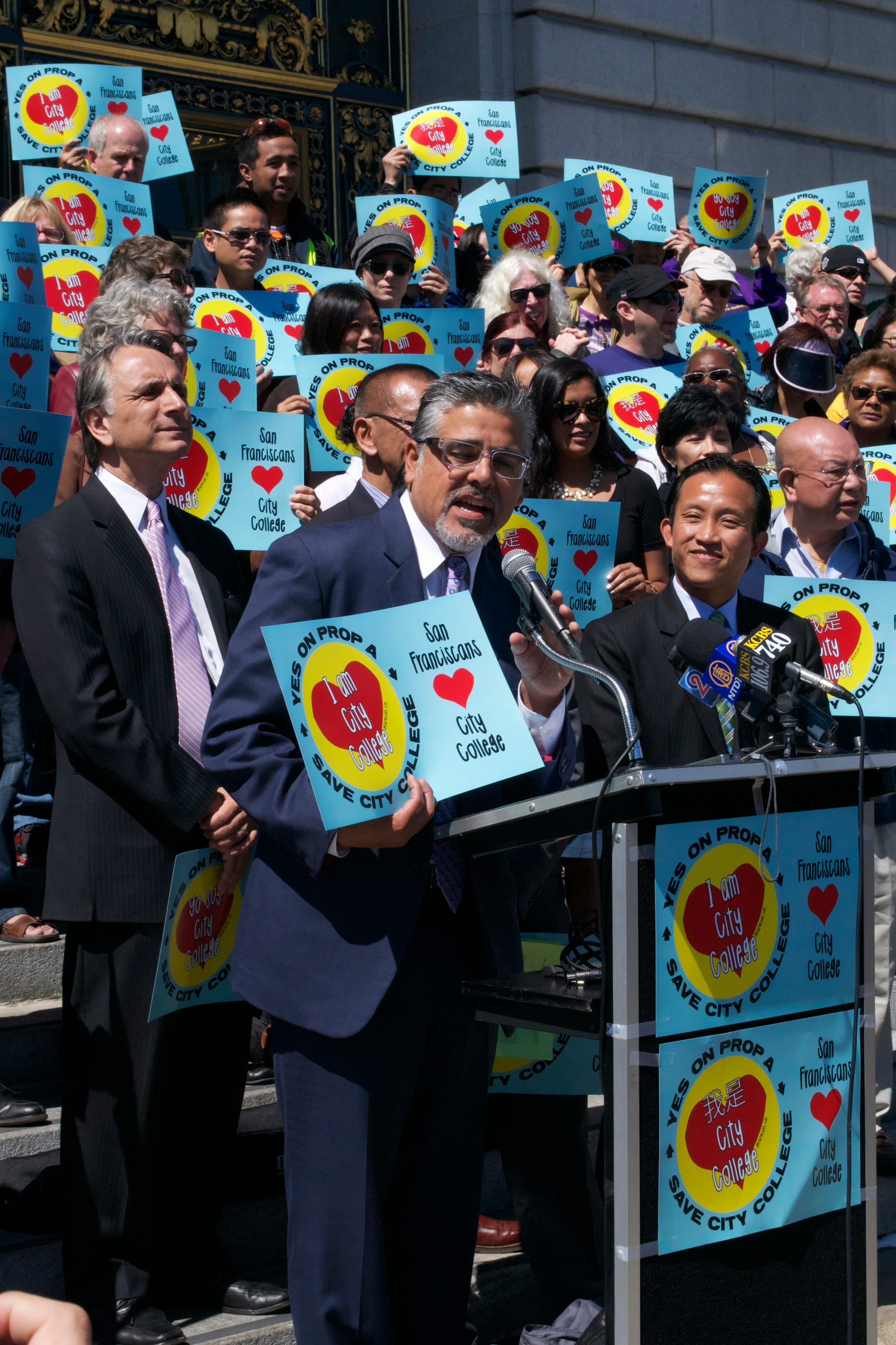 "My family came in the 60s and benefited from City College," he said. "It is one of the best public institutions to lift people out of poverty. This is a job creation machine. GEDs to ESL to job training classes. This is what it's about. If everyone really cares about jobs, you must support proposition A."