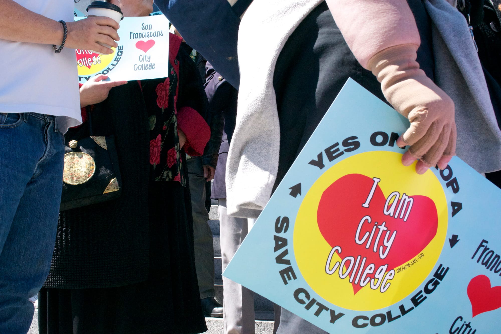 By Sara Bloomberg. Bright yellow, blue and red signs proclaimed "I am City College" in several languages on Sept. 4 as nearly 200 people rallied outside of City Hall to support Proposition A, a local parcel tax initiative that will raise $14 million a year for the college.