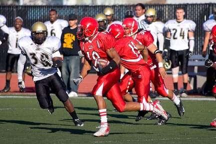 Midway through the second quarter, the Rams’ offense was still struggling. Delta took the advantage and scored on a 23-yard touchdown pass to receiver Garrett Andrews from quarterback Peitro Murdaca. Andrews went on to score four touchdowns that day. During the play, the Rams’ defense was unable to react after an offsides penalty was thrown, allowing Delta to take a 16-0 lead with just under five minutes of play left in the first half.