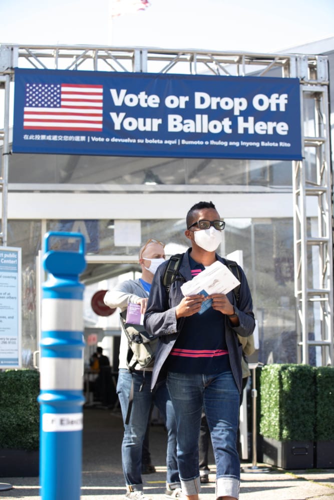The city’s main voting center opened Oct. 5 in front of Bill Graham Civic Auditorium at 99 Grove Street, and will be open Monday through Friday at 8 am to 5 pm, with shortened hours on weekends. Voters can vote at a ballot booth, drop off their completed ballot, or request curbside voting.