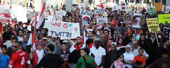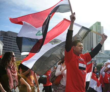 A few thousand people gathered in Civic Center Feb. 5 to stand in support of the Egyptian people and demand an end to the regime of Hosni Mubarak, who has held power for nearly 30 years.