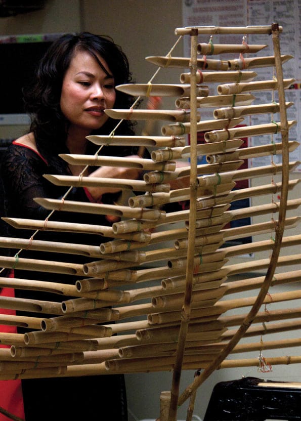 Vo comes from a family of musicians and began playing at the age of four. She plays several different instruments, including the dan tranh (16-string zither), the bamboo xylophone, the monochord, and the k’longput.