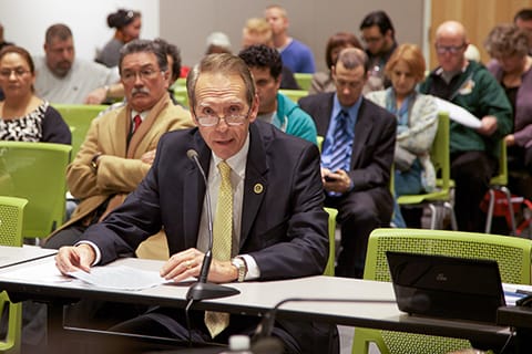 A crowd of 20 consisting of spectators, faculty, students and journalists gathered behind the elevated red seats and square tables reserved for the Board and their guest, California Community Colleges Chancellor Brice Harris. Harris attended the meeting for one reason: engaging with local leadership in a conversation on the issue of accreditation.