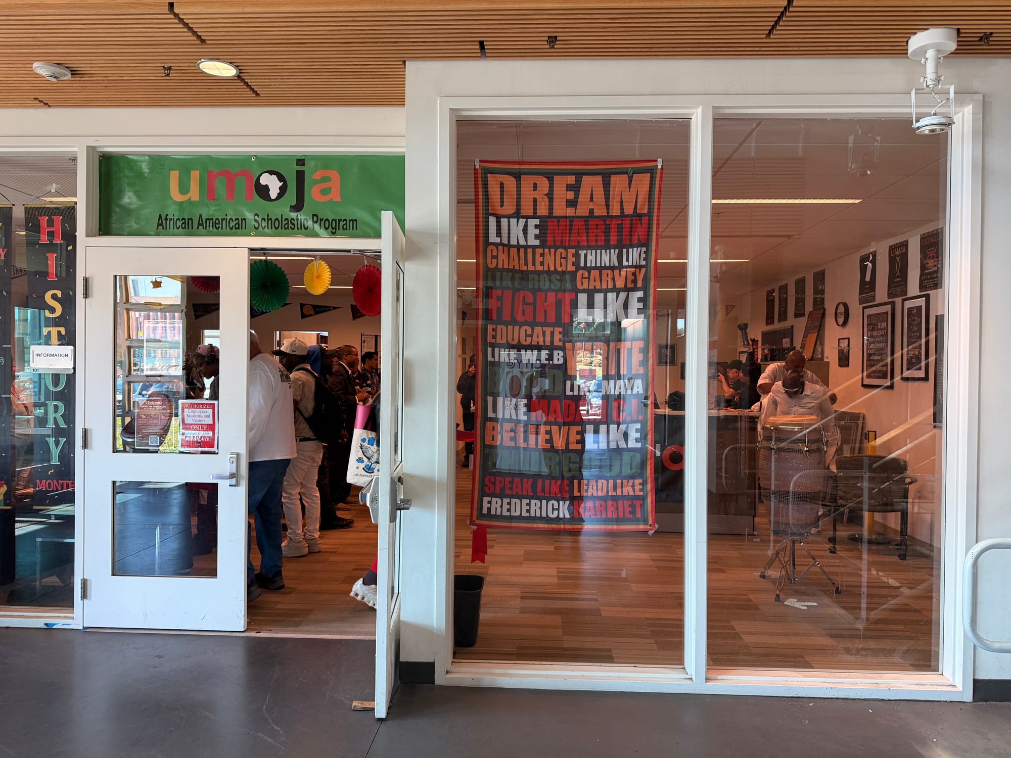 Kicking off Black History Month, students and faculty packed the lobby of the Harry Britt Building alongside Tony Mayfield’s vibrant drumming at Room 101.
