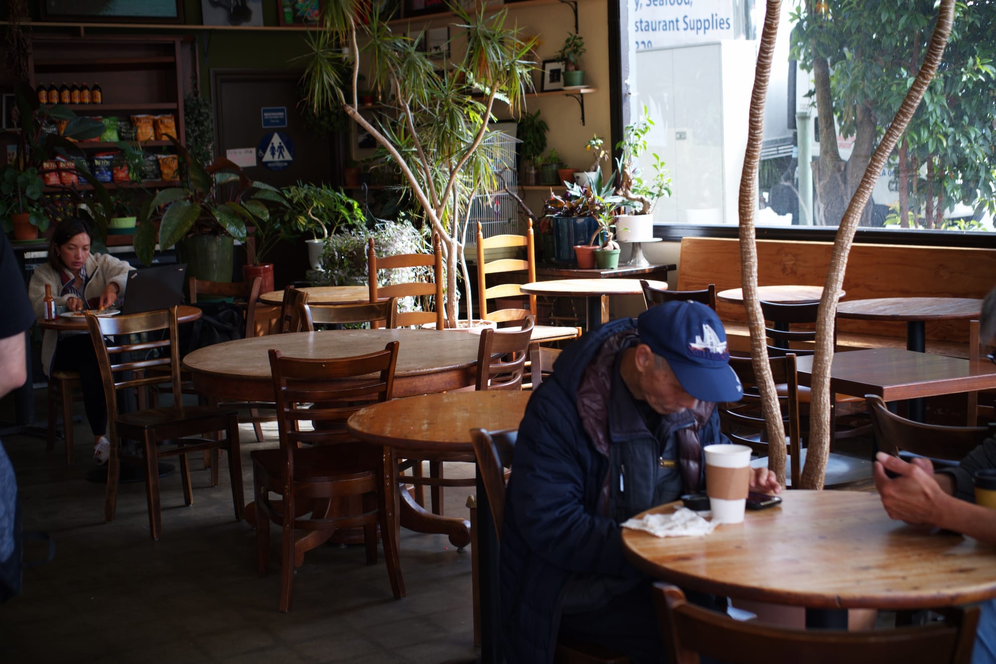 This is a cafe that encourages productivity. High ceilings and plenty of natural light make the space open and airy. A parakeet chirps occasionally over the world music playing from a floating JBL speaker. Best for long-haul solo work sessions when you want to settle in and stay productive throughout the afternoon.