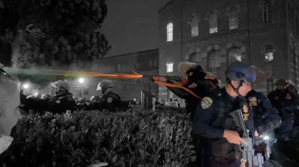 'Less-than-lethal' bullets were shot directly at protesters by California Highway Patrol at UCLA. Highway patrol on a university campus is absurd enough, but going against training to fire projectiles directly at students is even more ludicrous.